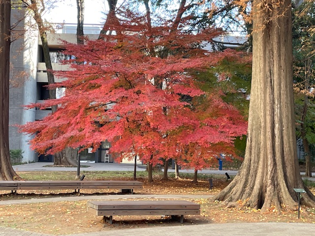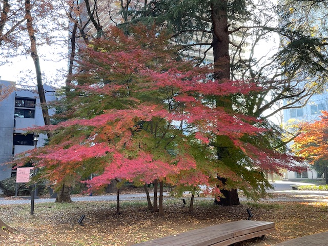 (編集中)記念会館周りの木(秋)~事務局員の季節だより(2025.秋)~ ☆ もみじ、黄葉、紅葉 ☆ 事務局のある目白キャンパスの木々の紅葉! 11月初旬は、図書館前、テニスコート前、食堂前、から紅葉に。 ~大きな木が多いので上のほうから紅葉に(↓図書館の窓から)~ 11月中旬には、いちょうなどの黄葉、そして、かえでなどの紅葉! 12月初旬は、かえでのグラデーションがより紅を鮮やかにしています。 以上、11月&12月のもみじの様子でした。 ~目白キャンパスの構内を身近に感じていただけましたら幸いです。~ \ 最新情報をチェック / FacebookXBlueskyHatenaCopy